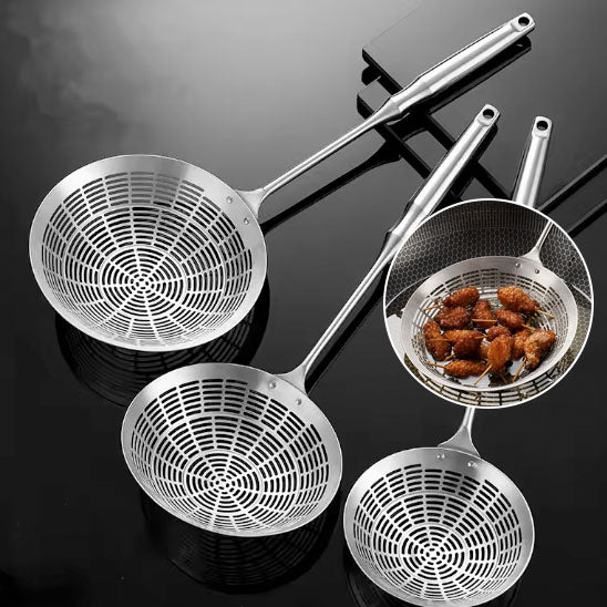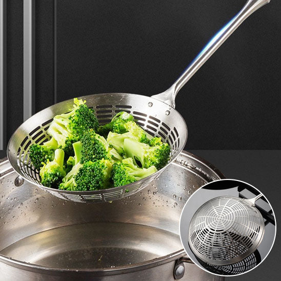 Souvenez-vous de ces moments où vous jonglier entre plusieurs ustensiles pour préparer un seul repas. Cette écumoire multifonction remplace avantageusement plusieurs outils de votre cuisine. Elle excelle aussi bien pour soulever délicatement des œufs pochés que pour récupérer des frites croustillantes sans excès d'huile. Sa conception en acier inoxydable de qualité supérieure résiste à une utilisation quotidienne intensive sans se déformer ni rouiller.