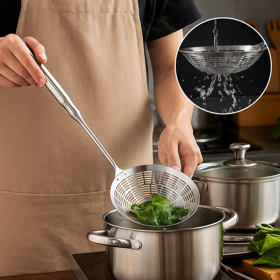L'écumoire que nous vous présentons aujourd'hui résout ce problème avec élégance. Conçue pour les cuisiniers exigeants comme vous, elle combine fonctionnalité et gain d'espace. Imaginez pouvoir retirer vos aliments de l'eau bouillante ou de l'huile chaude en toute sécurité, sans vous brûler ni éclabousser. C'est désormais possible grâce à cet accessoire aussi pratique qu'intelligent.