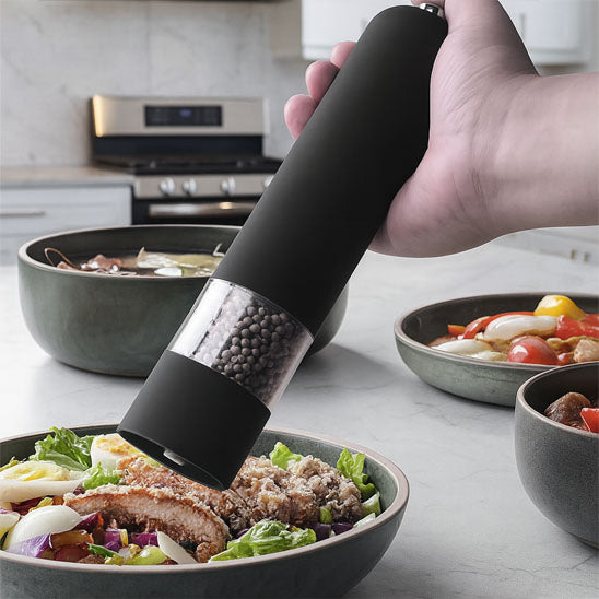 L'Ensemble Moulin à Épices Électrique transforme cette corvée quotidienne en un véritable plaisir culinaire. Avec une simple pression du doigt, vos plats s'assaisonnent parfaitement. Fini les mouvements répétitifs et fatigants! Ce petit appareil deviendra rapidement l'accessoire indispensable que vous utiliserez à chaque repas, vous offrant précision et confort pour relever tous vos plats.