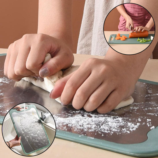 Imaginez-vous préparer un repas complet avec un seul accessoire polyvalent. Commencez par découper vos légumes sur la face plastique, retournez simplement la planche pour préparer votre viande sur l'inox, puis revenez aux légumes sans risque de contamination. Cette fluidité de mouvement transforme votre expérience culinaire quotidienne en la rendant plus agréable et sécurisée.