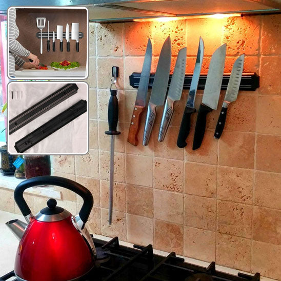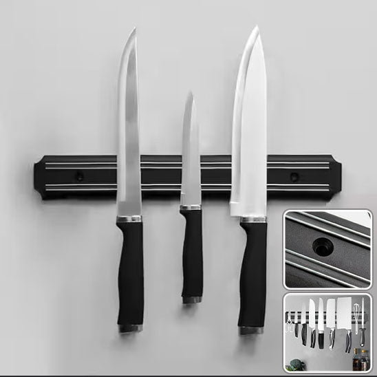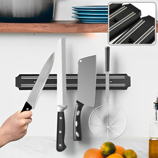 Notre porte couteaux magnétique transformera votre espace de travail en un lieu ordonné et fonctionnel. Fini le temps où vos couteaux s'entassaient dans un tiroir, s'émoussant les uns contre les autres. Cette bande magnétique puissante maintient vos outils à portée de main tout en libérant vos surfaces de travail. Sa conception élégante s'intègre parfaitement dans toute cuisine moderne, alliant praticité et esthétique dans un accessoire indispensable.