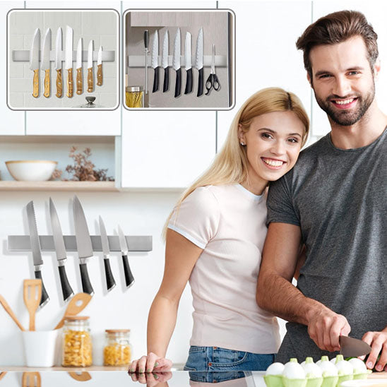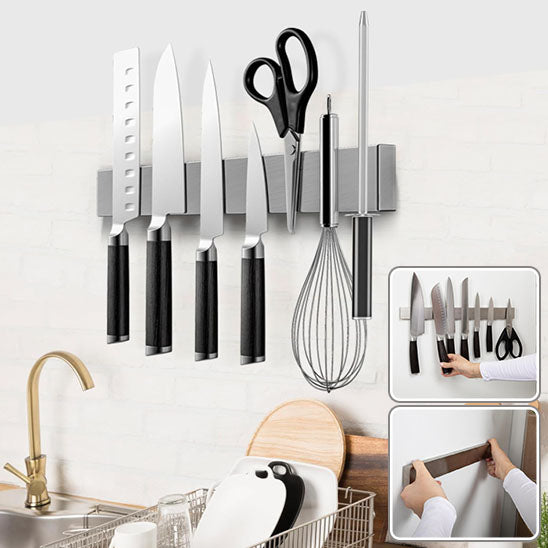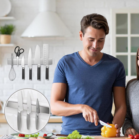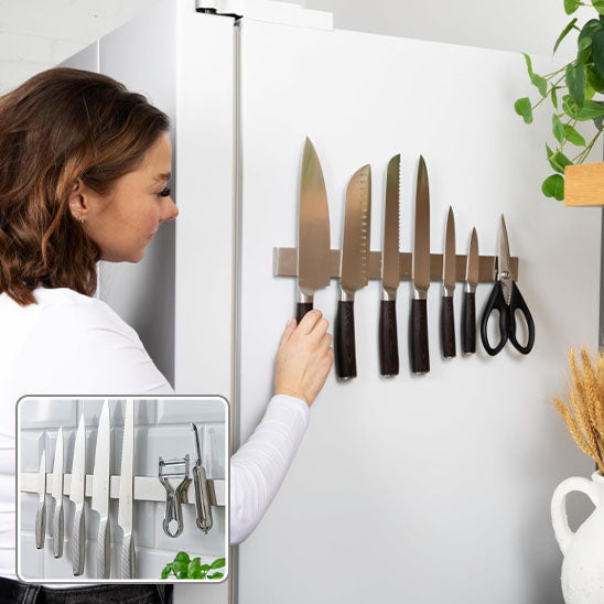 Le Porte Couteaux Magnétique est la réponse que vous attendiez. Fini le désordre et les risques de coupures accidentelles ! Ce rangement mural ingénieux transforme l'organisation de votre espace de travail en un clin d'œil. Imaginez tous vos ustensiles de découpe parfaitement alignés, accessibles en un instant, tout en libérant vos précieux plans de travail. C'est comme avoir un assistant silencieux qui vous tend exactement ce dont vous avez besoin, au moment où vous en avez besoin.