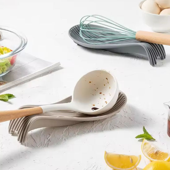 Contrairement aux supports en métal ou en céramique, notre Ensemble de 4 Repose cuillère en silicone offre une protection optimale pour vos surfaces. Ils ne rayent pas vos plans de travail, ne conduisent pas la chaleur et résistent aux taches tenaces. Vous pouvez poser sereinement vos ustensiles chauds sans craindre d'endommager vos belles surfaces de cuisine. N'est-ce pas rassurant de savoir que votre plan de travail reste protégé même dans le feu de l'action ?
