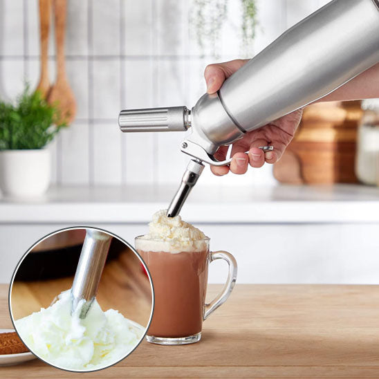 L'utilisation de ce siphon est un jeu d'enfant. Versez votre préparation liquide, vissez le bouchon, insérez la cartouche N2O (vendue séparément), secouez doucement et c'est prêt ! Contrairement aux méthodes traditionnelles qui demandent effort et patience, votre chantilly est prête en quelques secondes. Vous pouvez même préparer votre crème à l'avance et la conserver au réfrigérateur jusqu'à 10 jours, gardant toute sa légèreté et sa texture aérienne.