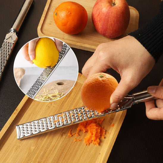 Notre Zesteur premium est la solution que votre cuisine attendait. Conçu pour les passionnés de cuisine comme pour les débutants, cet ustensile robuste vous permettra d'extraire facilement les zestes d'agrumes, de râper vos fromages préférés ou même de parsemer délicatement du chocolat sur vos desserts. Dites adieu aux outils fragiles qui vous laissent tomber au moment crucial de votre préparation!